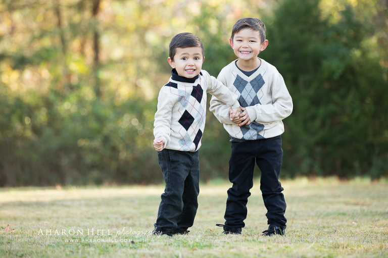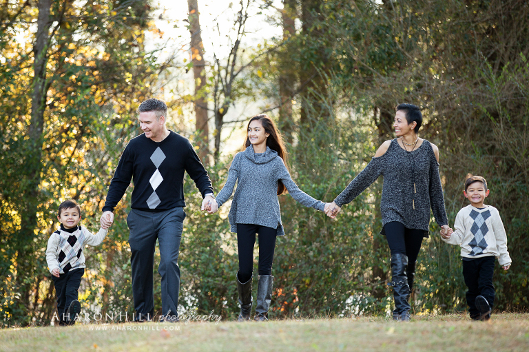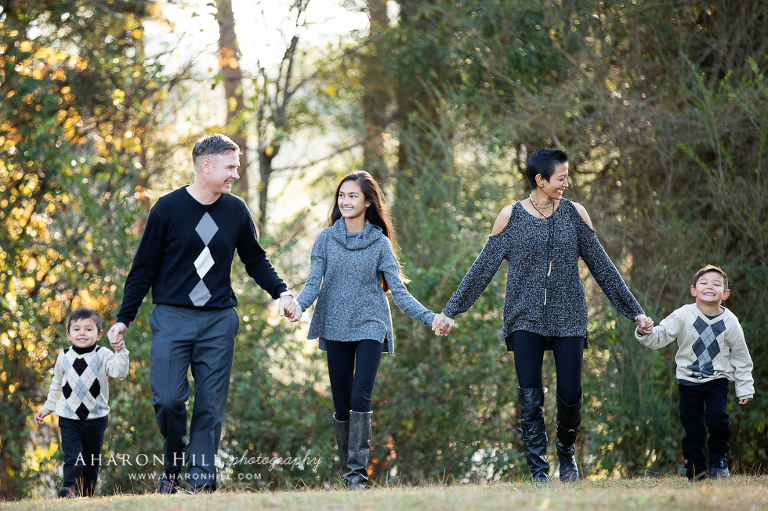 The trail around the lake in their neighborhood and their enormous backyard had some gorgeous filtered light late morning, so we took advantage of it!