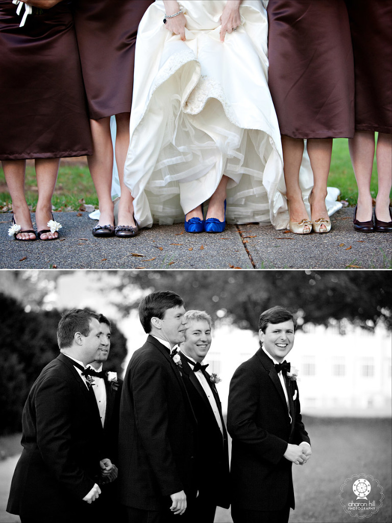 We loved traveling to Charlotte, NC for Corinne and John’s gorgeous church wedding, followed by a reception at the Mint Museum. The bride wore a heavy silk gown and a nearly-cathedral-length veil… and of course, blue shoes with 5 inch heels. Was it any accident that this bride chose to have her reception at a venue hosting a designer shoe exhibit? We think not! Thanks to a gorgeous and gracious couple for letting us capture your magical day.