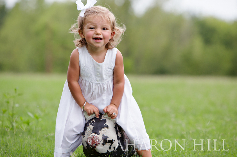 She was not afraid to play with her doggie trike, piggy and bubbles, all while wearing some of the cutest little-girl fashions I’ve ever seen! She even wore a silver bracelet and ring!