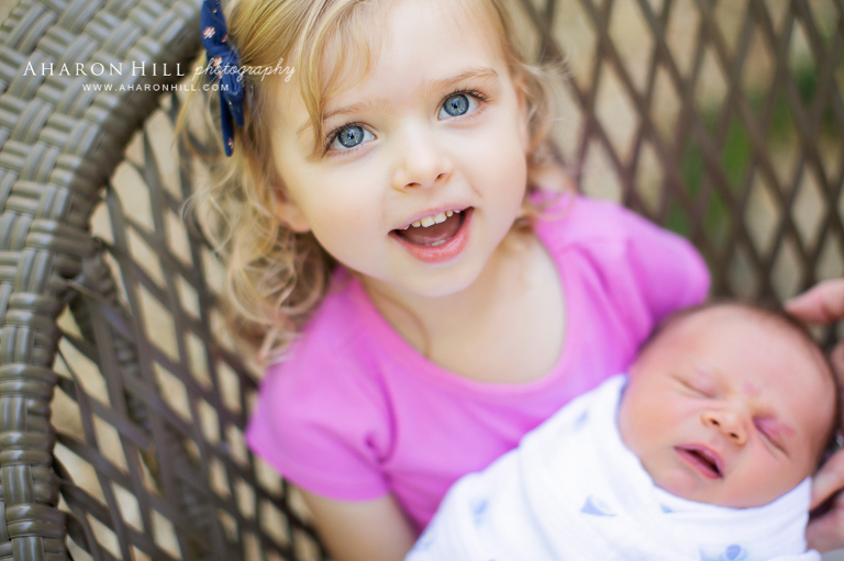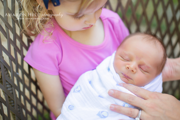 Mom and dad were relaxed and enjoyed coffee in the warm morning air while I wrapped and tucked their little man, and played hide and go seek and peek a boo with their daughter (which paid off because she ultimately agreed to let me take a picture of her with her little brother, a proposition she had not been too keen on at first!)!